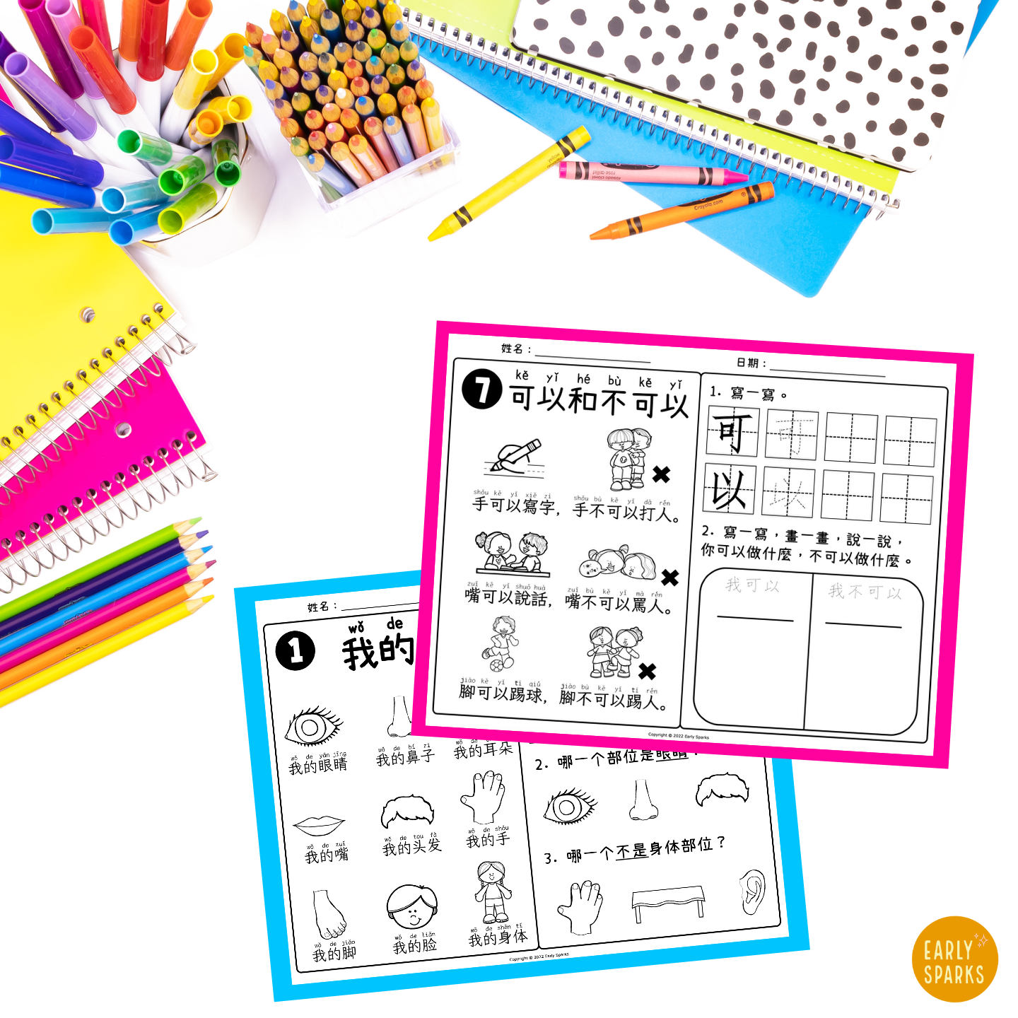 Label your drawers or bins in Chinese so kids know where to get the materials they need.