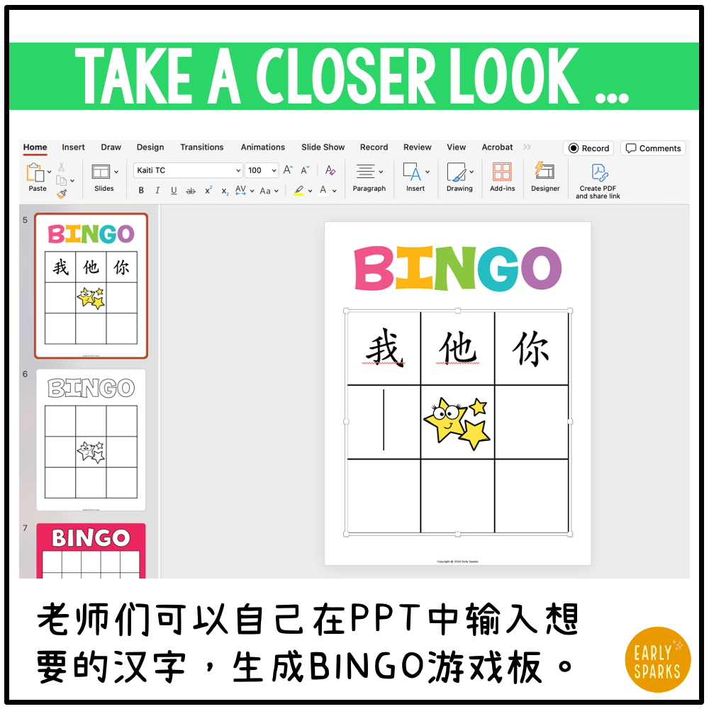 The EDITABLE slides allow Chinese teachers to customize the words they've been learning. Simply type in the Chinese characters/words you want the children to practice, and they can play with a teacher or partner in the class. This activity is also great for homeschooling parents teaching Chinese to their kiddos.
